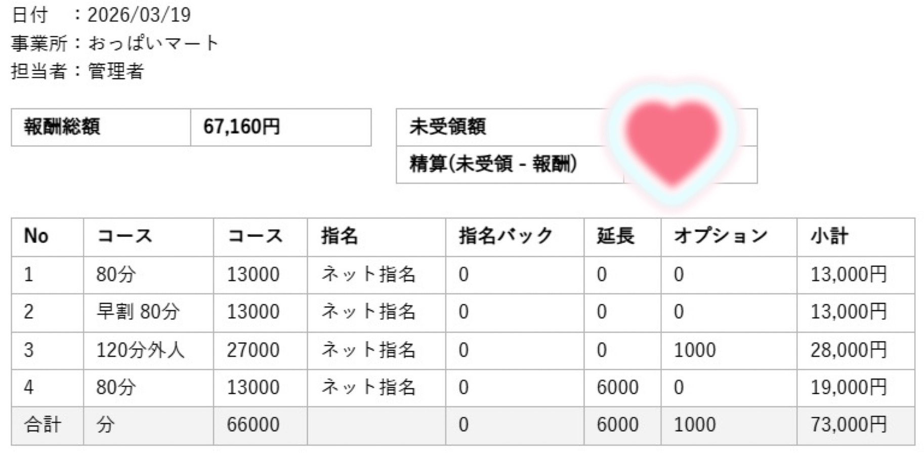 「リアル明細💰昨日「初日」だった女性の明細です🤗」